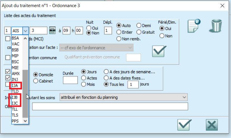 • Possibilité d'ajouter une majoration MCI avec les actes de BSI (BSA / BSB / BSC / AMX / IFI)