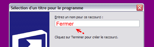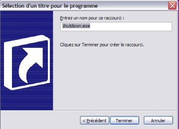 3) Cliquez sur suivant et saisissez un nom pour votre raccourci, par défaut la case est notifiée : shutdown.exe